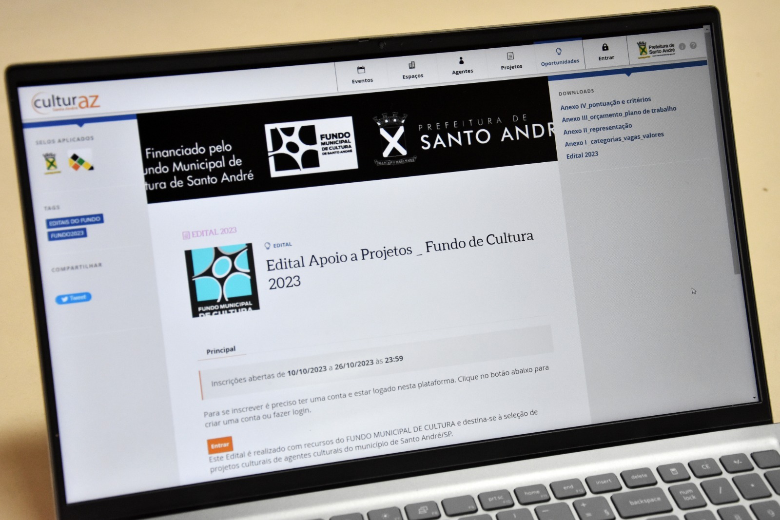 A Prefeitura de Santo André abriu inscrições para fornecer apoio financeiro a projetos culturais de todas as linguagens, por meio do Fundo Municipal de Cultura. O edital completo e formulários de inscrição estão disponíveis na plataforma CulturAZ: http://acesse.santoandre.br/EditalFundoDeCultura2023
