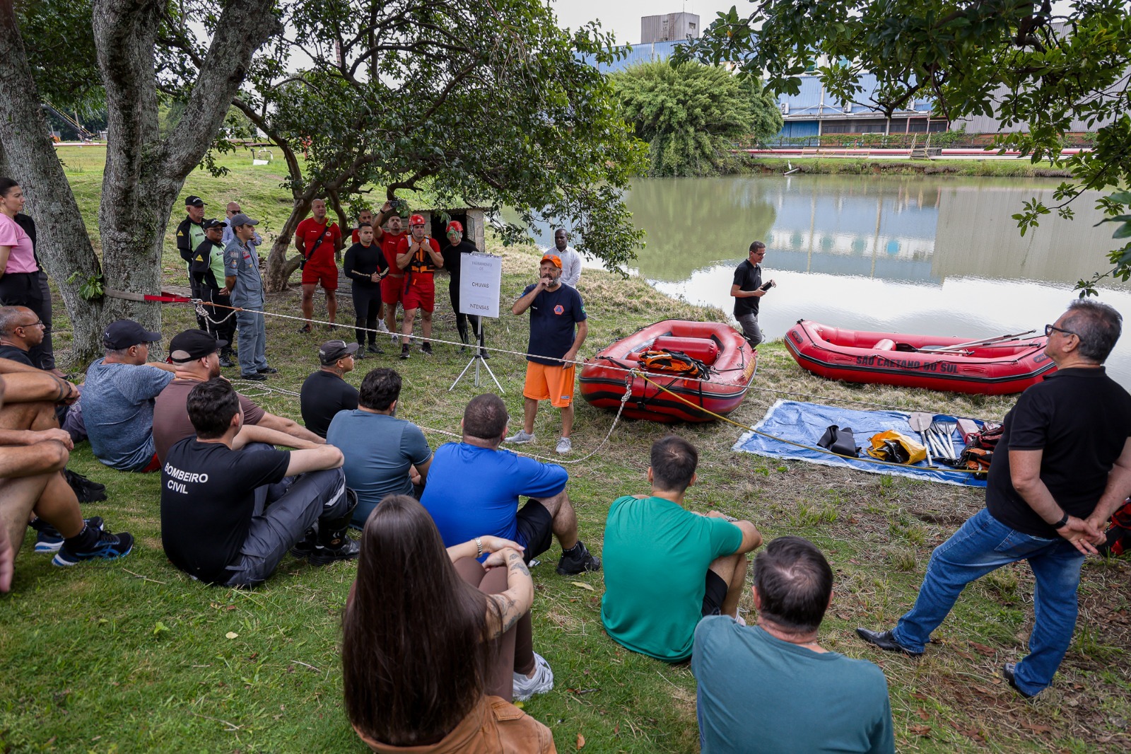 O local foi escolhido por possuir um reservatório que permite simular cenários reais, como situações de afogamento e pessoas presas em enxurradas. Participaram do treinamento representantes das secretarias de Segurança, Mobilidade Urbana, Saúde, Educação e Governo, além de integrantes da sociedade civil.