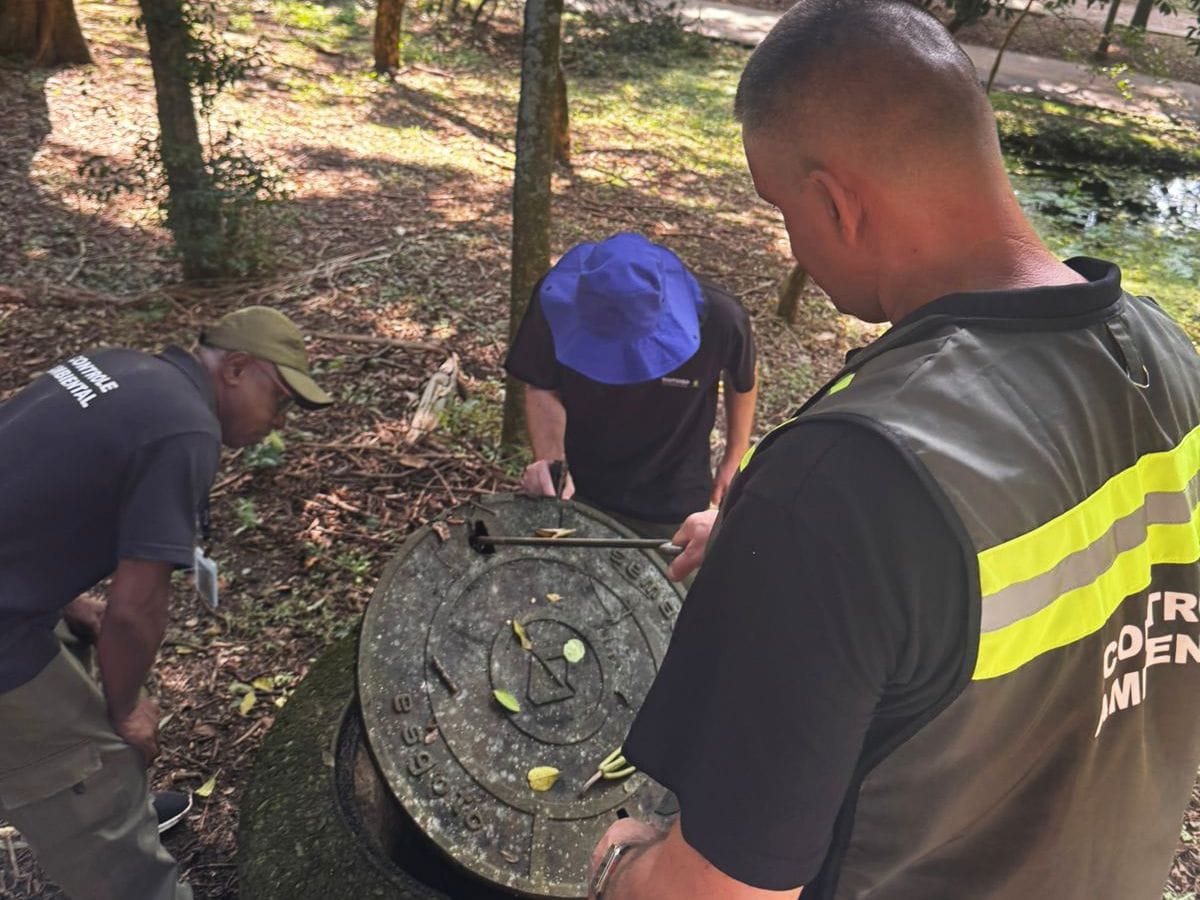 Durante as inspeções, foram constatadas ocorrências de imóveis que direcionam esgoto doméstico para a rede destinada exclusivamente ao escoamento de águas de chuva. Esse tipo de irregularidade faz com que efluentes sejam lançados diretamente nos lagos do parque, comprometendo a qualidade da água, causando desequilíbrio ambiental e podendo provocar impactos à fauna aquática.